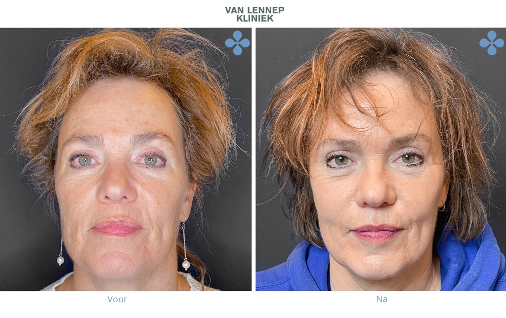 “Het is een veilige behandeling die je gezicht een liftend effect geeft. Het resultaat is altijd natuurlijk, maar dat geldt eigenlijk voor al onze behandelingen. Hier moest ik even op duwen, vandaar dat er nu een klein bobbeltje zit, maar die gaat snel weer weg. Er zitten wat rode plekjes, maar die camoufleren we met een beetje minerale make-up zodat je er niets van ziet.”